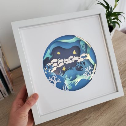 Je produis les cadres au moment de la commande, les coloris des découpes peuvent donc varier en fonction de l’arrivage de papier mais resteront toujours dans l’esprit de la photo.